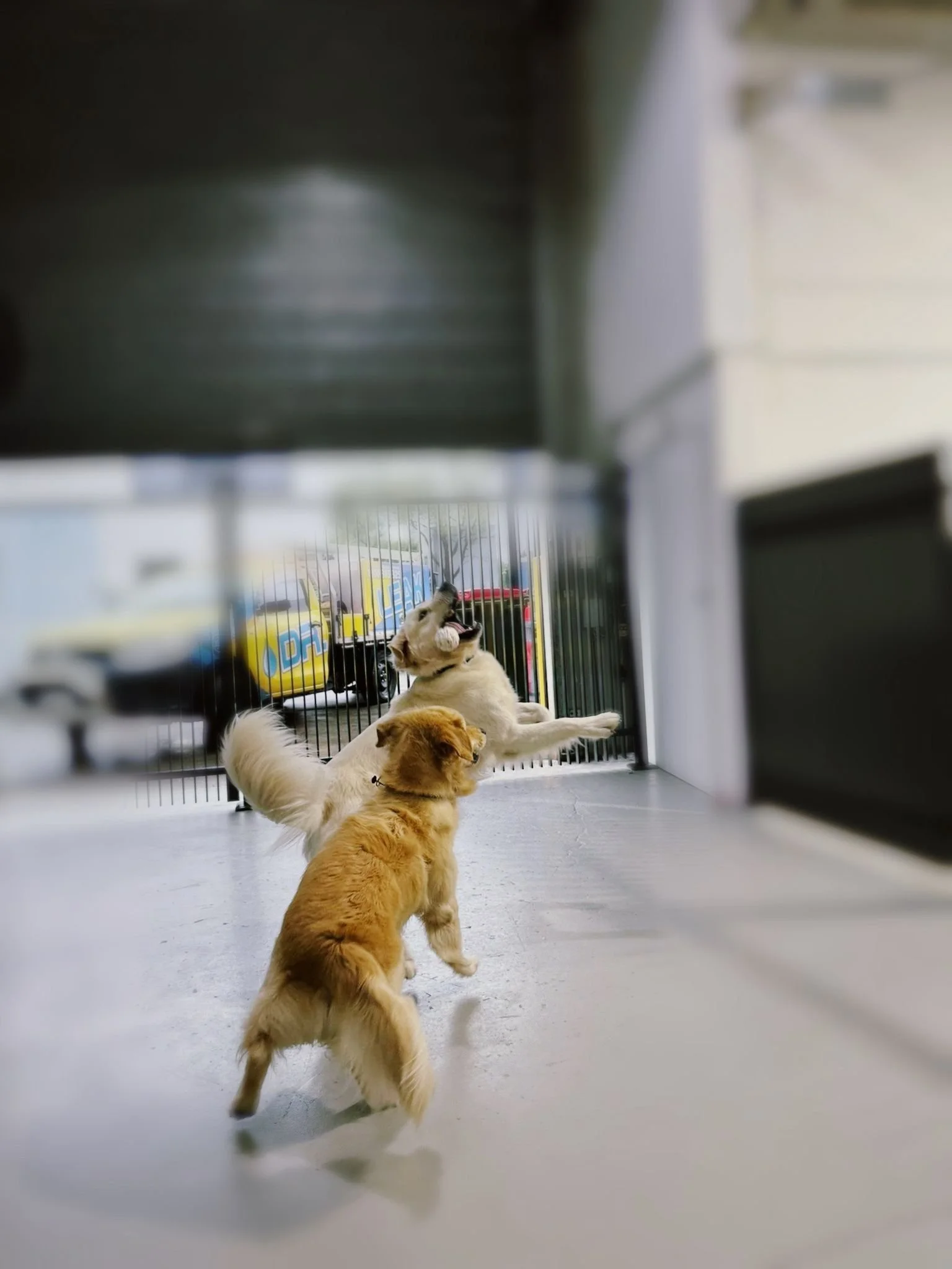 Our daycare offers a safe, fun, and enriching indoor environment for dogs of all sizes. With supervised play, rest breaks, and engaging activities, your pup will stay happy, active, and cared for all day long.